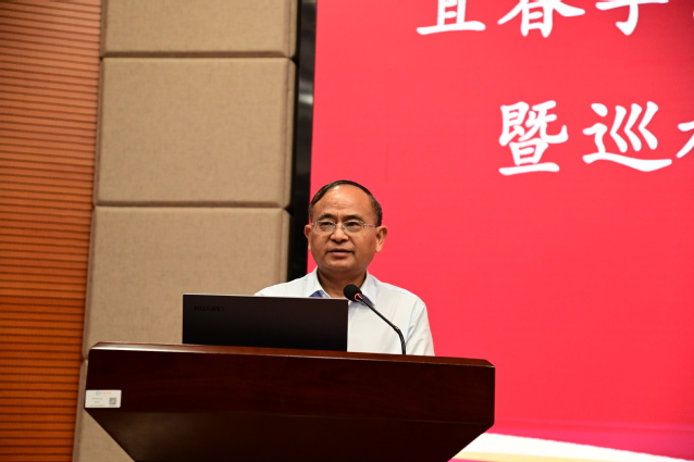 校党委副书记、校长蔡海生总结了学校2025年上半年工作。抓改革,深化体制机制创新,发展动能进一步激活;强作风,压实责任强化执行,发展保障进一步筑牢;提质量,聚焦内涵建设核心,育人实效进一步提升;促发展,深化校地与开放合作,办学格局进一步拓展;创一流,锚定申硕与质量标杆,特色优势进一步打造。对“1+10”个重点工作进行了部署,“1”是学校的安全稳定工作,“10”是申硕攻坚、审核评估、特色打造、办学条件、教学科研、学科建设、校地合作、人才培养、校园文化、招生就业十个方面的工作。