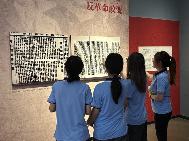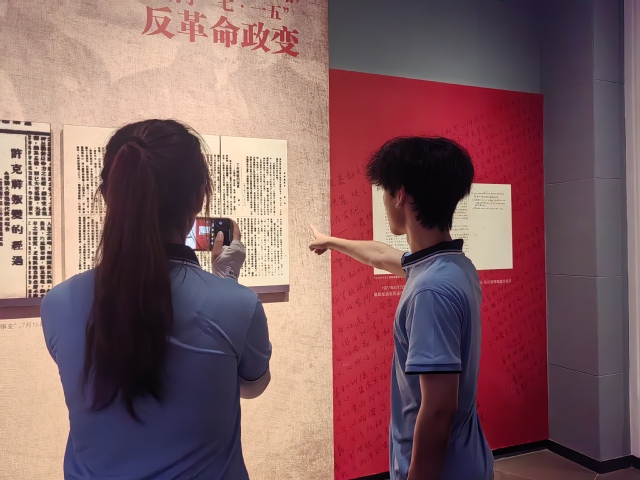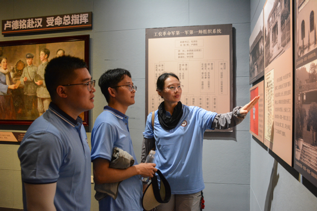在秋收起义红色纪念馆,实践队30余名队员手持自制知识卡列队进入。“寻找最触动你的文物”任务挑战一发布,队员们便分散至各展陈列区。与此同时,在锈迹斑斑的工农革命军军旗复制品前,计算机科学与技术专业的王文珍用手机微距镜头记录旗面细节:“这针脚里藏着革命初心,我们要通过数字技术让更多人看见。”数字经济专业学生万伟诚及其团队将文家市会师等重大历史事件转发为可视化图表。 实践队成员跟随讲解员讲述,队员们重点挖掘本土关联历史,当听到芦溪镇群众曾冒死为起义部队运送粮食的故事时,队员们自发用手机录制音频素材。实践队指导老师李丹丹表示:“这些本土细节是最好的思政教材。”现场还开展了“文物故事微竞答”,通过互动的形式深化历史认知。