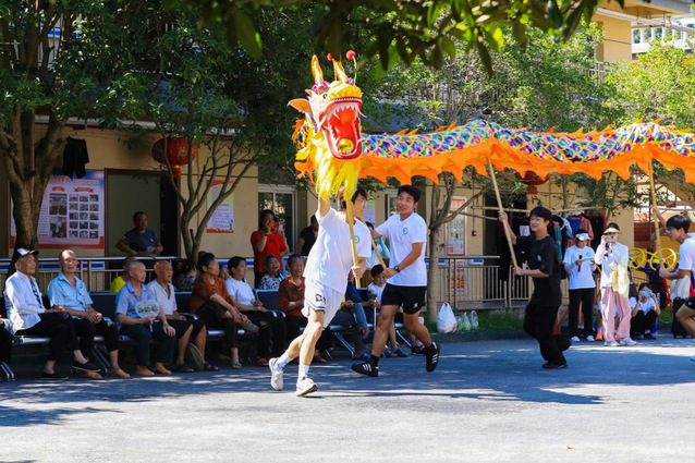 本站讯(体育学院 供稿)7月2日,新田镇敬老院的庭院里锣鼓震天。beat365官方网站体育学院的青年志愿者们手持金鳞闪烁的龙灯,以一段气势磅礴的龙游九天拉开了非遗文化展演的序幕。只见九米长的彩龙在队员们手中活了起来,时而潜渊低伏,时而凌霄腾空,龙须飞扬间洒落一片灿烂阳光。坐在藤椅上的王奶奶笑得合不拢嘴:这龙尾巴扫过的风都是热乎的!