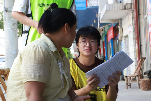 实践队深入田间地头与村民家中,围绕“资源型村庄绿色转型”主题开展问卷与访谈。针对新坊村“技术升级慢、产业链条短、农产品附加值低”三大痛点,队员们现场记录、即时讨论,后续将形成调研报告,为当地政府与村委会提供决策参考。与此同时,团队还走村入户发放防溺水、防电信诈骗宣传资料,为乡村安全再添一道防线。