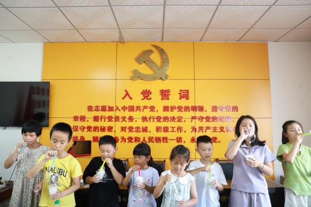 “为什么泡泡是圆的?”“一张白纸为什么能托住书本?”在“科学小课堂”上,志愿者带领孩子们动手完成泡泡液配制、“平衡鸟”折纸、结构力学小实验等趣味项目,把表面张力、重心平衡等抽象概念变得可触可感。实验间隙,队员们还讲述了钱学森、邓稼先等科学家科技报国的故事,把科学精神与家国情怀一起播进童心里。