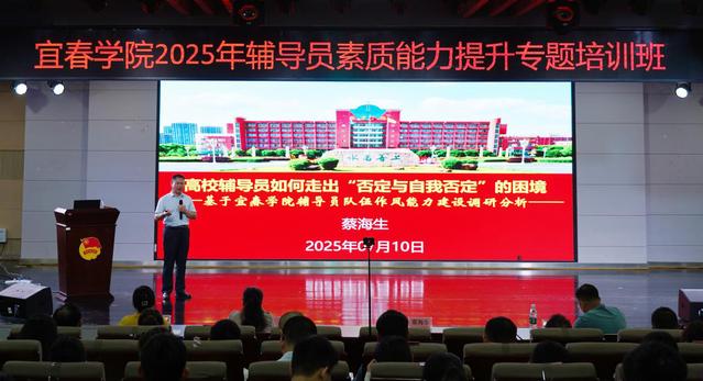 7月10日上午,蔡海生校长作了《“高校辅导员如何走出‘否定与自我否定’的困境——基于beat365官方网站辅导员队伍作风能力建设调研分析”》的专题报告。他在报告中梳理了beat365官网辅导员队伍的基本情况,指出了存在的问题,进行了原因剖析,提出了对策措施及长效机制。他强调,辅导员要树立家国情怀,坚守“为党育人、为国育才”的神圣使命;树立教育情怀,做到“教书育人、管理育人、服务育人、环境育人”;树立大我情怀,将个人的事业融入学生的成长、教育的发展;争做大先生,不但做学生成长成才的指导者,还要做推动学校高质量发展的中坚力量,实现辅导员从“中间”走向“中坚”。