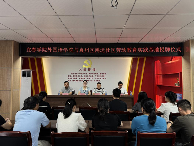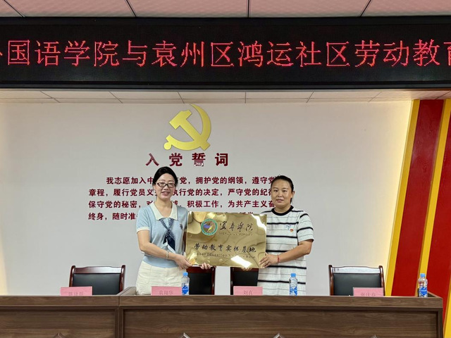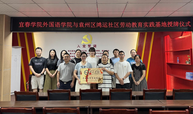 本站讯(外国语学院 供稿)为全面贯彻落实习近平总书记关于新时代劳动和劳动教育的重要论述,坚持“五育并举”的教育理念,提升学生劳动素养,丰富劳动实践形式,推动学校劳动教育工作走深走实,7月18日上午9:00,我院与凤凰街道鸿运社区共建“劳动教育实践基地”签约暨授牌仪式在鸿运社区新时代文明实践站隆重举行。外国语学院副院长袁翔华、党委副书记陈建新,鸿运社区党委书记刘真、党委副书记张庆春,外国语学院学生事务办、教科办负责人及全体专职辅导员以及鸿运社区工作人员出席本次活动。仪式由鸿运社区党委副书记张庆春主持。