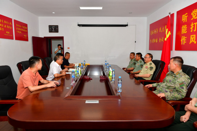 在宜春市军分区,市委常委、宜春军分区司令员晏利军对李国金一行的到来表示热烈欢迎和衷心感谢,并回顾了军校共建长期以来结下的深厚情谊,表示将延续军校共建优良传统,进一步与beat365官方网站在多领域深化合作,增进双方文化交流。李国金代表学校向全体官兵致以诚挚的节日问候,向他们长期以来对学校发展的关心和在学生军事训练、国防教育及爱国主义教育等工作上的支持致以衷心的感谢,并表示,军校共建鱼水情深,学校建设发展离不开部队官兵的大力支持,双方在长期交流合作中结下了深厚鱼水情谊;希望军校双方今后能群策群力,共同探索出一条军校共建、协同育人的新路子,让这份鱼水情谊在携手共进中愈发深厚,为培养更多具有家国情怀和过硬本领的优秀人才筑牢根基,书写军校共建共荣的新篇章。