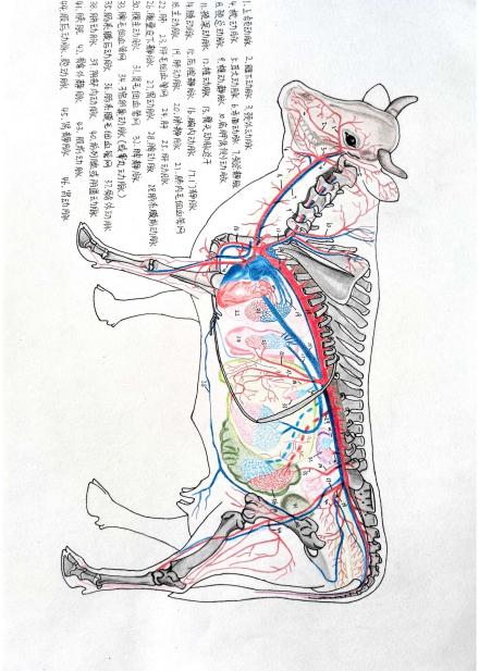 朱敏作品《牛全身血管分布手绘图》及“精品”荣誉证书