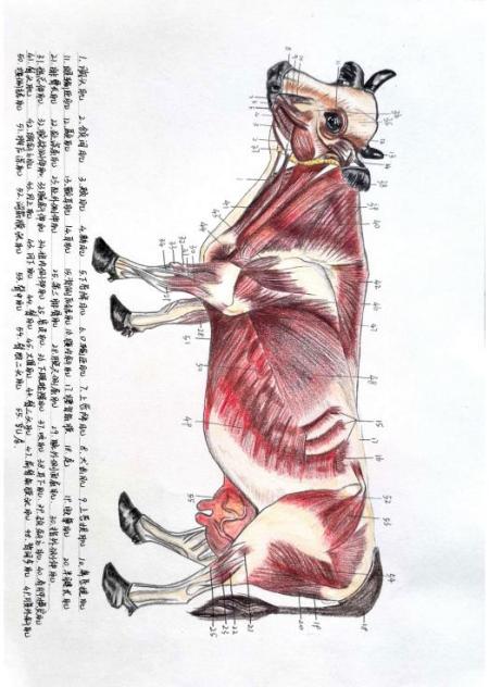 陈恺璐 作品《牛全身浅层肌肉手绘图》被评为优秀奖。