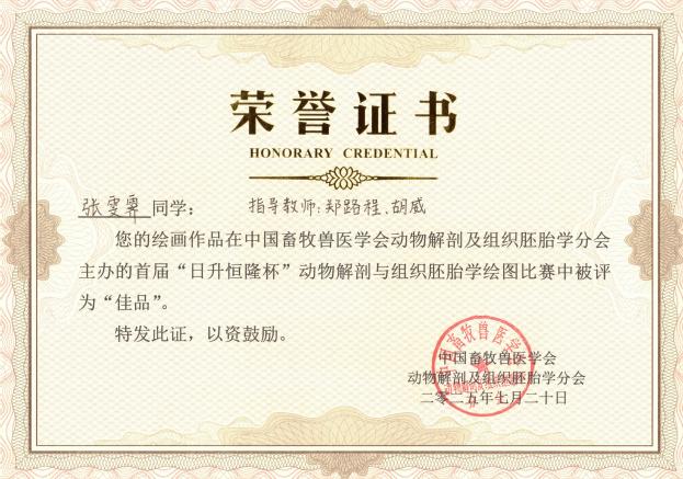 朱敏作品《牛全身血管分布手绘图》被评为“精品”;