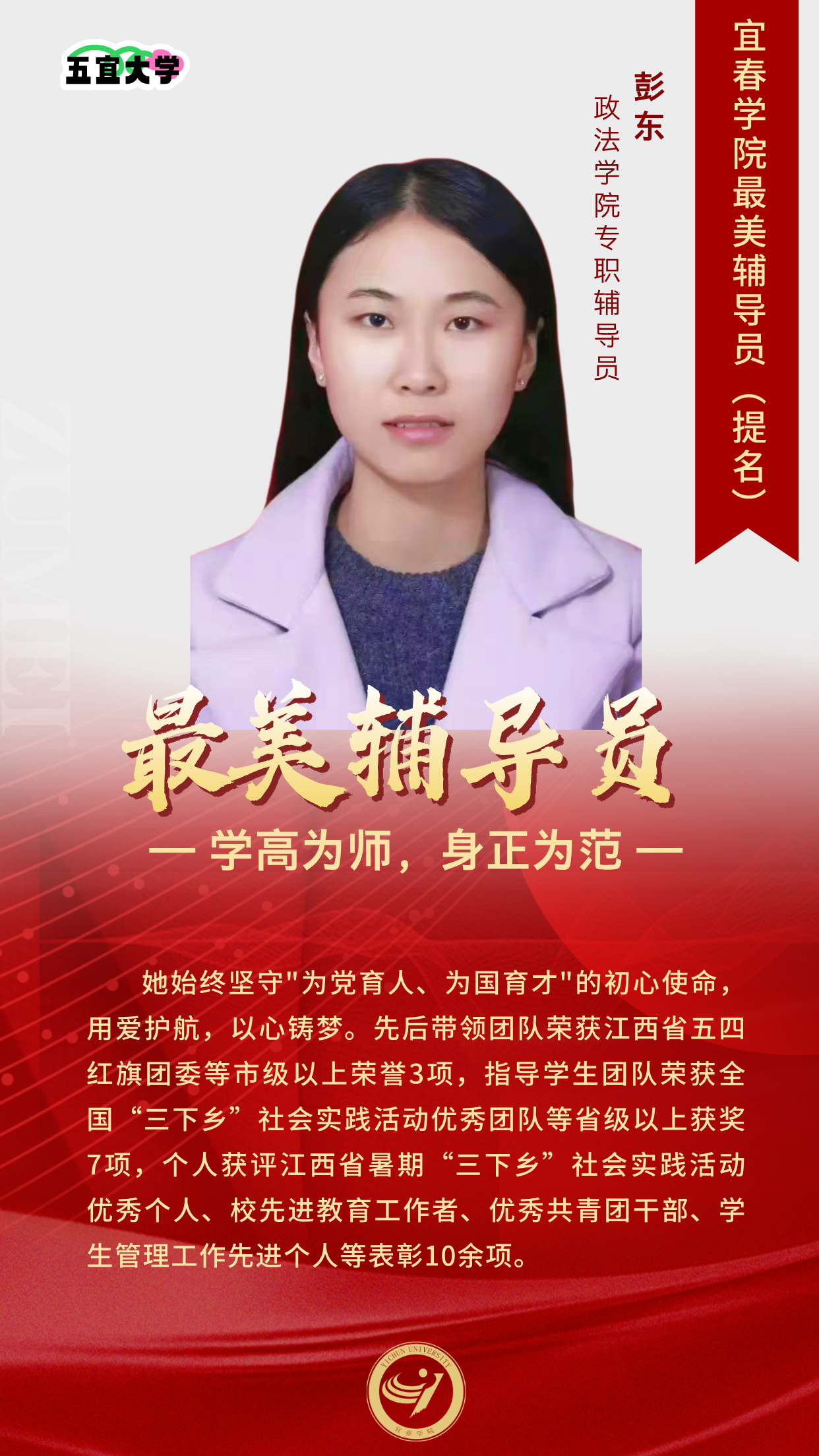 【最美辅导员】最美辅导员提名:彭东