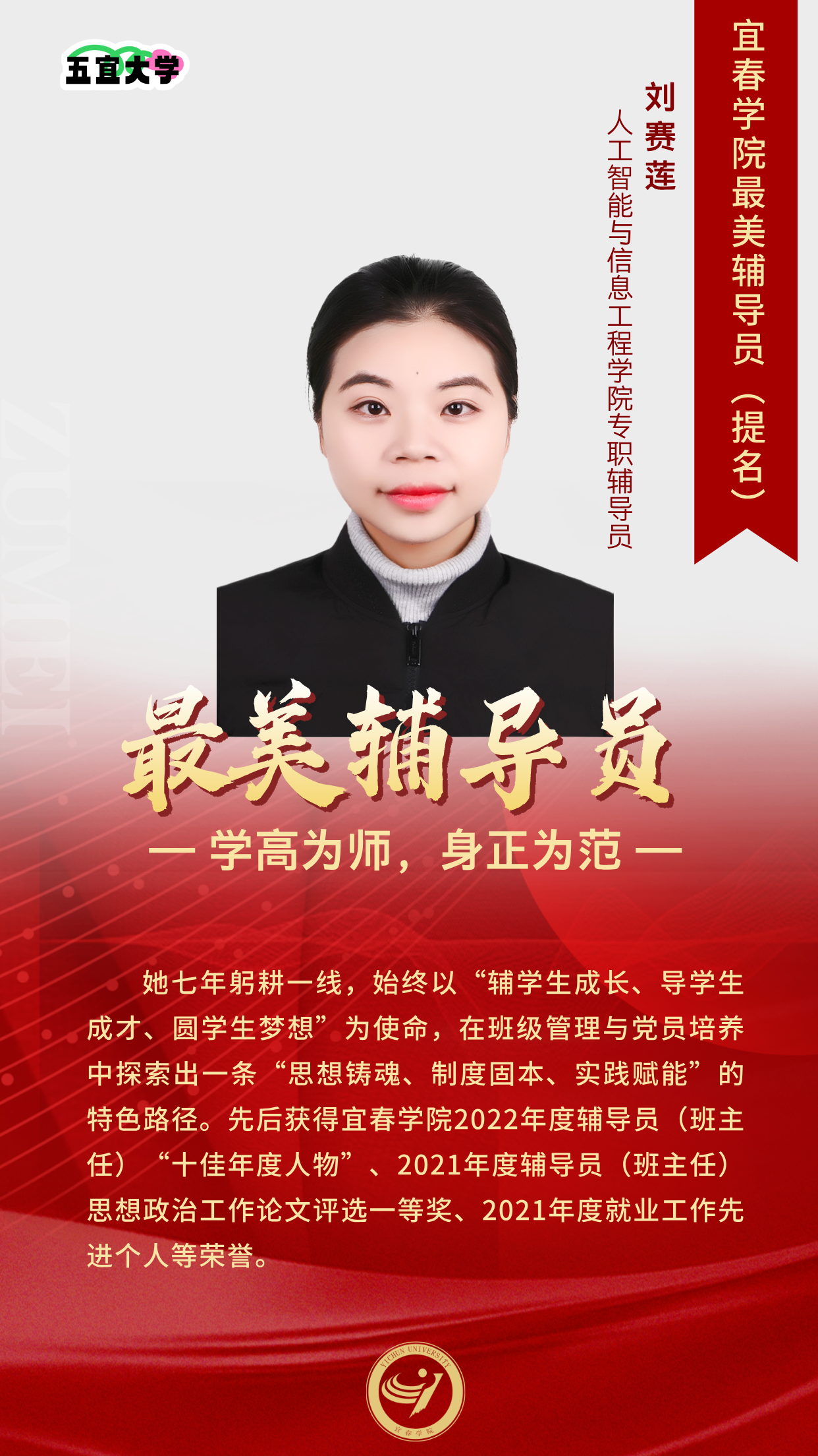 【最美辅导员】最美辅导员提名:刘赛莲