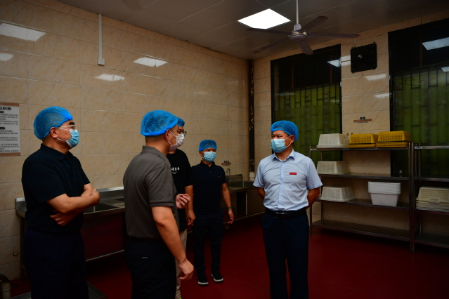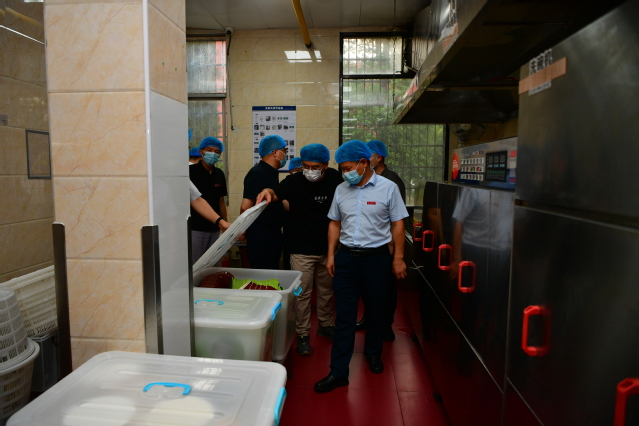 会议结束后,蔡海生带队深入食堂操作间、餐用具消毒间、就餐区、食材储存等核心区域,现场察看环境消杀与卫生清理情况,并针对检查过程中发现的问题提出了具体的整改要求。