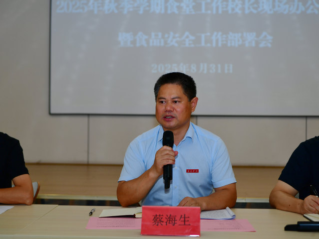 蔡海生从责任担当、风险排查、餐饮质量、监督管理四个方面对新学期食堂工作提出了明确要求,他强调,做好食堂工作要扛起责任担当,要以高度敬业精神和责任意识保障师生饮食安全,杜绝麻痹侥幸;要建立常态化全方位风险排查机制,学校相关部门要协同食堂主体,细致检查设施设备、食材采购等各环节,严控源头并提前应对季节性风险;要在保障安全的基础上提升餐饮质量,丰富菜品、注重营养搭配与价格稳定,鼓励厨师创新;要完善监督管理体系,加大日常检查力度,落实相关制度,同时拓宽师生监督渠道,以监督促提升,筑牢食品安全防线。