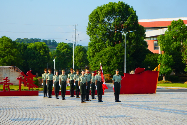 9月3日清晨,学校主教楼前广场庄严肃穆,百余名师生代表身着整齐服装,手持小国旗,共同参加纪念主题升旗仪式。伴随着雄壮的《义勇军进行曲》,五星红旗冉冉升起,全体师生肃立行注目礼,目光追随着国旗升至杆顶,现场弥漫着庄重而激昂的氛围。