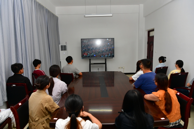 在科技楼学术报告厅,在家校领导、学校处级以上领导干部、学生代表一起观看了阅兵式。当受阅方队迈着铿锵有力的步伐通过检阅台,当先进的武器装备逐一亮相,现场师生不时响起热烈掌声。“从抗战时期的艰难求索,到如今的国富民强,一代代中国人的奋斗让我深受震撼。”人工智能与信息工程学院2022级学生朱世宏表示,观看阅兵式让他更加深刻地理解了“落后就要挨打”的历史教训,也更加坚定了学好专业知识、为国家科技发展贡献力量的决心。