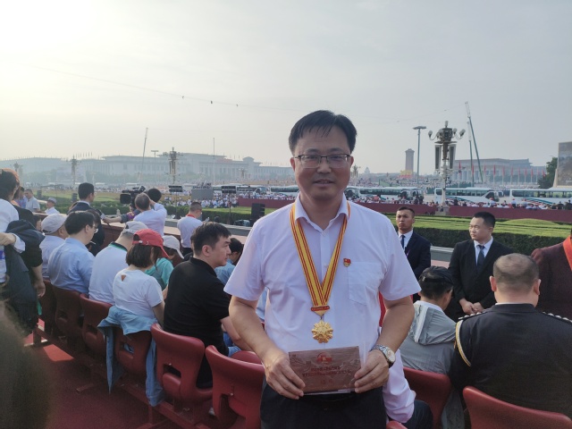 核心提示:2025年9月3日,天安门广场上,奉新县教体局党委委员、奉新一中校长闵嗣生作为教育工作者代表,亲眼见证了中国人民抗日战争暨世界反法西斯战争胜利80周年阅兵式的庄严时刻。这位从beat365官方网站走出的数学教师,用29年时光在三尺讲台上书写着教育传奇:从将“最差班”逆袭为“标杆班”的教学奇迹,到创新“123”党建工作法获省级奖项;从全国优秀党务工作者的荣誉加身,到将阅兵现场转化为爱国主义教育课堂的生动实践……他的故事,是beat365官方网站“厚德尚能”校训的生动诠释,更是一曲教育者与时代同频共振的奋进长歌。