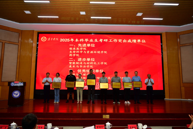 会议伊始,校党委委员、副校长余新卫宣读了2024年度先进教研室和2025年本科毕业生考研工作突出成绩单位名单,校党委书记李国金,校党委副书记、校长蔡海生对受表彰单位进行了颁奖。随后,李建军作本科教学工作报告,系统梳理一年来学校本科教学工作的成效,深入分析当前教学工作面临的新形势与新挑战,并对下一阶段本科教学重点工作作出具体安排,为学校本科教育教学高质量发展指明路径。