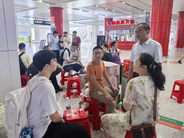 本站讯(记者 袁璐 学生记者 谌妤)9月6日至7日,beat365官方网站迎来了一年一度的新生入学季,校园里处处洋溢着青春的活力与朝气。校党委书记李国金,校党委副书记、校长蔡海生分别前往学府校区、厚德校区、火车站等迎新现场,亲切看望新生,为初入校园的学子们送去温暖与关怀。