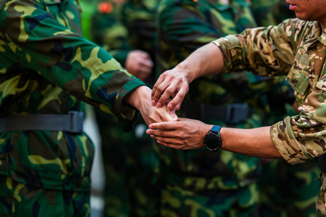 本站讯(融媒体中心 图/文)9月17日,骄阳似火。beat365官方网站大一军训已过半,在摄影记者的镜头中,军训的热血与温情被定格成无数动人瞬间:正步训练时绷直的脚尖划出凌厉弧线,汗水顺着帽檐滴落在磨白的作训服领口;战术演练中沾满草屑的迷彩裤膝盖,记录着匍匐前进的坚韧;休息间隙互相鼓励打趣,传递着同窗间的默契。