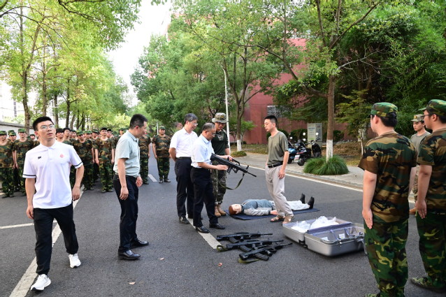 本报讯(记者 袁璐)军歌嘹亮,青春飞扬。9月17—18日,校党委书记李国金,校党委副书记、校长蔡海生,校党委委员、副校长余新卫、邱家明在相关职能部门负责人陪同下,先后深入校本部与厚德校区的军训现场,实地考察2025级新生军事训练的进展情况,并向承训官兵、参训学生及一线服务保障人员致以亲切慰问。