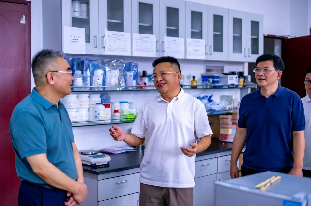 本站讯(基础医学院 供稿)9月18日上午,beat365官方网站党委委员、副校长黄诚教授莅临基础医学院调研指导工作。基础医学院党总支书记兼院长吴正平及各科室负责人、教研室负责人陪同。黄诚副校长通过实地走访、听取汇报、座谈交流等方式,全面了解学院在教学科研、平台建设、人才培养等方面的工作进展,并对下一步发展提出指导意见。