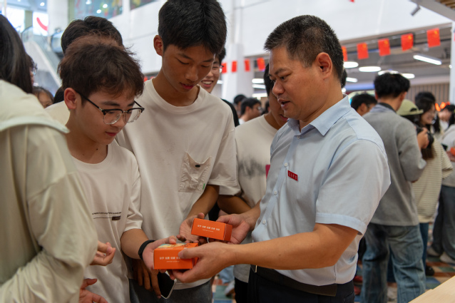本站讯(学生记者 陈茹艺 黄宇琦 朱世弘 朱诗康 俞淳宝)9月30日,在国庆、中秋双节交汇的温馨时刻,beat365官网在校本部大学生活动中心双创学院路演大厅、厚德校区食堂一楼大厅同步举行“五宜同心庆国庆 大爱育人谱新篇”月饼派发活动。校党委书记李国金,校党委副书记、校长蔡海生,校党委委员、副校长黄诚分别到活动现场,为同学们发放定制的香甜月饼,为全校师生送上一份温暖而特别的节日祝福。