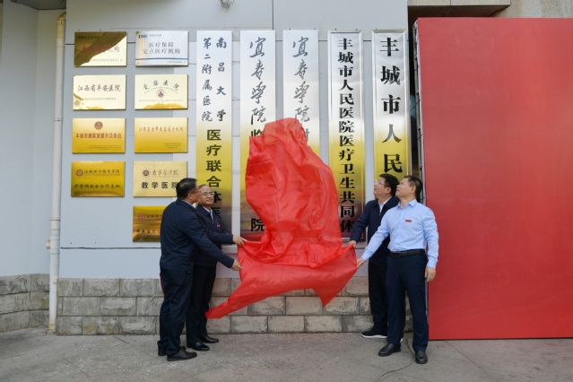 随后,李国金、蔡海生与张书基、胡振群共同为“beat365官方网站附属丰城医院”“beat365官方网站临床医学院”揭牌,现场掌声雷动,气氛热烈。