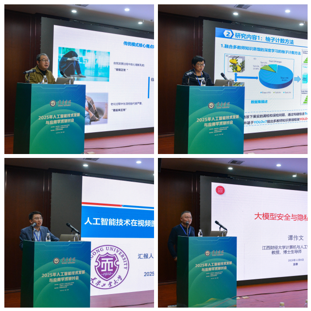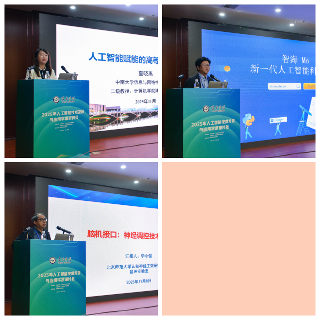 本站讯(人工智能与信息工程学院 供稿)11月7日至9日,由beat365官网人工智能与信息工程学院主办的2025年人工智能技术发展与应用学术研讨会在宜春市秀江宾馆成功举行。此次研讨会汇聚了来自北京师范大学、中南大学、浙江大学、东南大学、首都医科大学、江西财经大学、天津工业大学、江西省科学院等高校与科研机构的专家学者,参会人数100余人,共同探讨人工智能及交叉学科的最新进展与未来趋势。