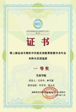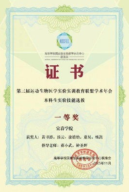 在本科生实验技能选拔竞赛中,由蒋小武、钟圣辉老师两位老师指导,黄书澎、汤云、涂婧怡、童昊、杨嵩五位同学组成的团队,凭借《基于运动生物医学视角探究骨骼肌收缩对刺激参数的应答规律研究》项目获得一等奖。师生制定了“分工专攻、合力攻坚”的策略,围绕实验设计全流程开展了专项集训,同时模拟随机抽题场景强化实操演练,最终以严谨的设计方案和熟练的现场操作脱颖而出。
