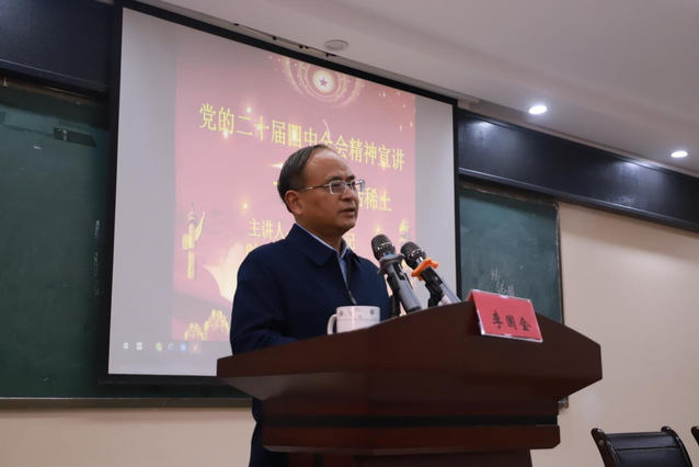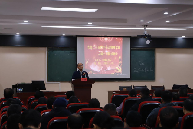 本站讯(智能制造与材料化工学院 供稿)为深入学习贯彻党的二十届四中全会精神,汇聚奋进力量,强化责任担当,11月19日下午,校党委书记李国金以《党的二十届四中全会精神宣讲——稀土王国话稀土》为题,走进智能制造与材料化工学院讲授专题党课。校党委委员、副校长谢芳以及学院全体教职工参加学习,党课由该院副院长张驰主持。