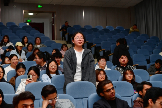 在随后的讲座中,金牌讲解员张静芳化身为“历史摆渡人”,带来了一场内容丰富且深入的文化讲座。她系统地梳理了从震惊学界的遗址发现,到意义深远的考古成果;并围绕海昏侯刘贺的传奇人生与一件件国宝级文物,进行了深入浅出的解读,成功地串联起海昏侯国的历史脉络,为观众搭建起一座通往西汉的桥梁。现场反响热烈,掌声不断。在互动环节中,师生踊跃参与,思维碰撞,将全场热情推向顶点。