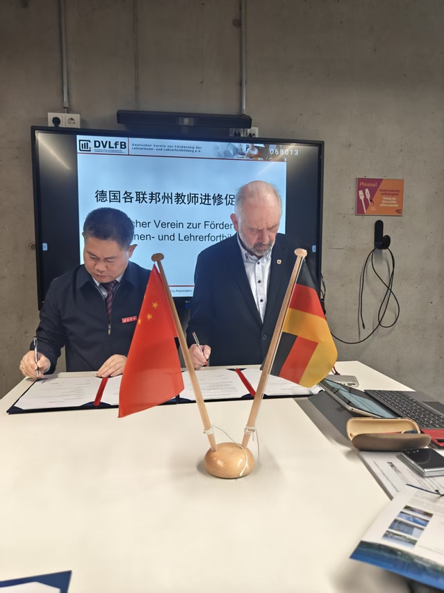11月18日下午访问德国教师进修联合会,与联合会董事会会长Jochen Mogler围绕引进德方教师来校讲学签署协议
