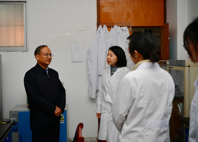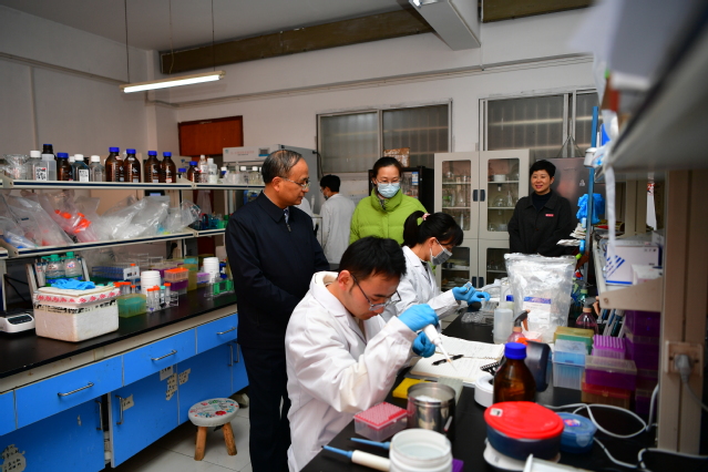 在药学院,李国金首先走进专业实验室,实地察看仪器设备配置、运行维护及科研项目推进情况,详细询问实验室建设规划、技术攻关难点及成果转化进展,对学院实验室硬件条件的改善给予肯定。随后,他专门走访看望了学院博士教师团队,与大家亲切座谈交流,关切询问科研方向、项目进展及工作生活需求,鼓励博士教师们发挥学术引领作用,紧盯领域前沿动态,深耕技术攻关,助力学院学科建设与科研水平提升。