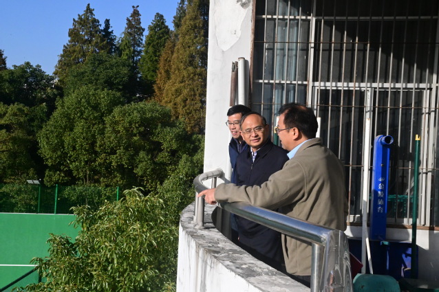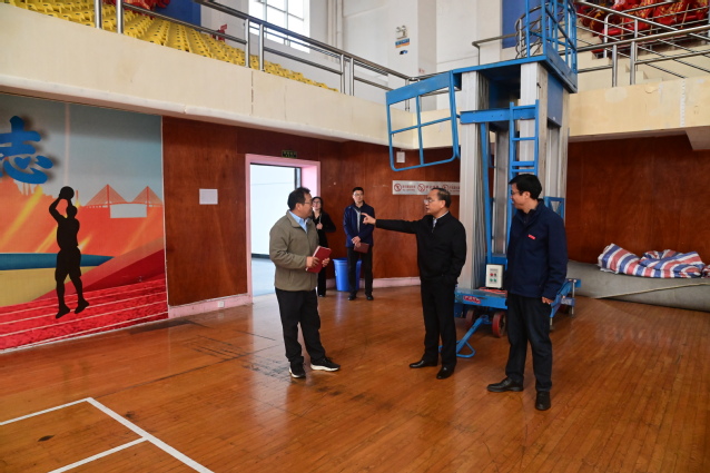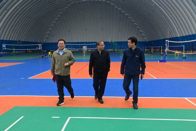 在体育学院,李国金前往学院实训场地、运动场馆,实地察看了教学设施配备、训练场地维护及实践教学开展情况,与师生亲切交流。