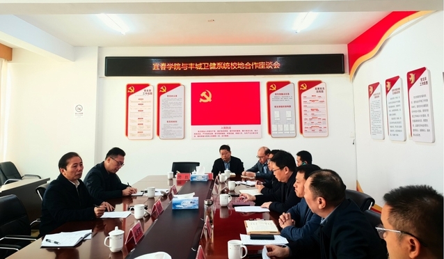 本站讯(临床医学院 供稿)为推进区域卫生健康事业高质量发展,深化医教研协同创新,12月2日,校党委委员、副校长李建军,临床医学院院长陶正、副院长牟芳芳赴丰城市卫健委开展校地合作项目洽谈。洽谈会在丰城市卫健委会议室举行,市委常委聂勉,市卫健委党组书记甘琼华,副主任熊强,市人民医院党委书记熊良荣及分管同志李文波、谭细生、黄克文,市中医院党委书记喻映光及分管同志甘贱生,市妇幼保健院党支部书记付培天及分管同志樊红等出席交流会。甘琼华主持会议。