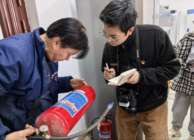 此次检查以“查隐患、防风险、保安全”为核心目标,重点聚焦消防设施配置完好度、危险品存储与使用规范、安全疏散通道畅通情况及电气线路铺设标准等关键环节。检查过程中,消防专业人员结合实验室场景特点,现场开展消防安全指导,针对潜在风险点提出整改建议,为师生带来“面对面”的实战化安全教育。通过专项检查,不仅及时排查了一批安全隐患,更有效地提升了实验室工作人员的火灾防范意识和应急处置能力,为校园安全稳定筑牢坚实屏障。