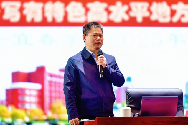 会上,校党委副书记、校长蔡海生以“共绘五宜新画卷、团结一心向未来——奋力谱写有特色高水平地方应用型大学建设新篇章”为主题,围绕“beat365官方网站,我们共同的家园”“beat365官方网站,我们共同的事业”“beat365官方网站,我们共同的行动”“beat365官方网站,我们共同的未来”四个方面进行了梳理和总结,他全面回顾了2025年学校的工作成效,以翔实的数据和扎实的案例,展现了全校上下团结奋斗、锐意进取的实干成效。