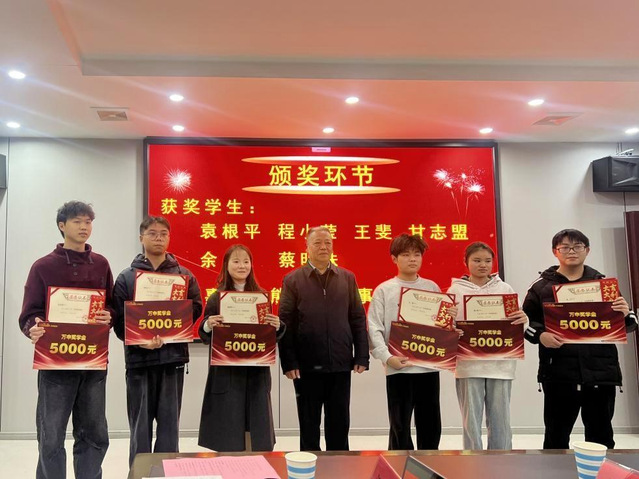 在公布评奖情况并宣读2025年获奖名单后,颁奖环节隆重举行。熊洪峰董事长为获奖学生颁发了荣誉证书,现场掌声不断。
