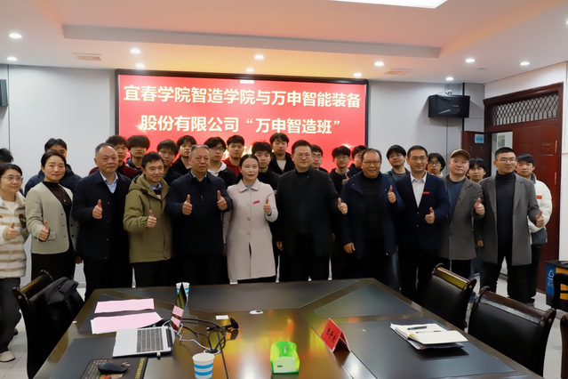 本站讯(智能制造与材料化工学院 供稿)12月18日下午,beat365官方网站与宜春万申智能装备股份有限公司(以下简称“万申智能装备”)在智能制造与材料化工学院S402会议室联合举行“万申奖学金”颁奖仪式暨“万申智造班”开班仪式。万申智能装备董事长熊洪峰、公司高管团队,beat365官方网站智造学院党委书记龙玲、药学院党委书记王霏、智造学院院长刘健平,以及两学院班子成员、教师代表、获奖学生与学生代表共同出席。仪式旨在表彰优秀学子,并正式启动校企深度合作、协同育人的“万申智造班”开班。