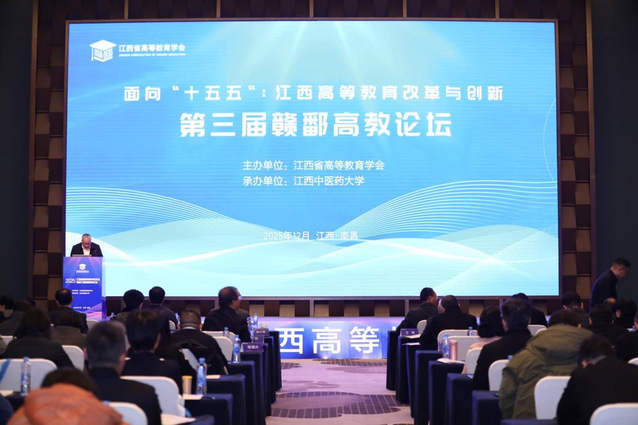 本站讯(特约通讯员 吴山)12月26日-27日,江西省高等教育学会2025年年会暨第三届赣鄱高教论坛在南昌举行。活动以“面向‘十五五’:江西高等教育改革与创新”为主题,汇聚教育行政部门、省内外高校专家学者,教育管理工作者等300多名代表,共商新时代江西高等教育高质量发展路径,为推进教育强省建设凝聚共识、汇聚力量。校党委副书记、校长蔡海生一行6人参加了此次论坛。