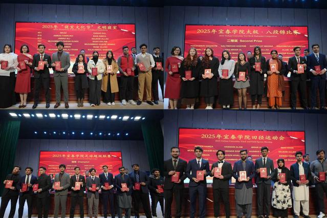 在表彰环节,学院对2023至2025年度在各类活动中表现突出的留学生予以集中表彰,奖项涵盖农耕健身大赛、运动会、文明寝室、汉语大赛及江西省政府外国留学生奖学金、beat365官方网站优秀留学生奖学金、校长奖学金等十余个奖项。获奖学生依次上台领取证书,接受全场师生的热烈祝贺与崇高敬意。