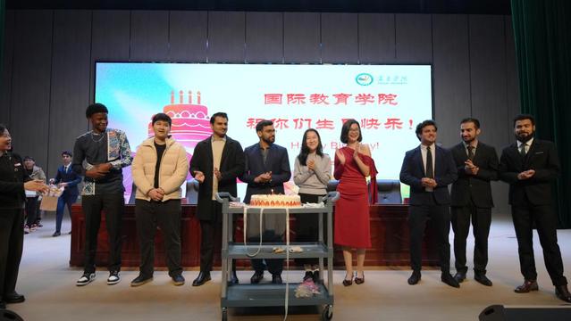 大会特别设置了温馨环节,为12月份生日的14名留学生举行了集体庆祝。全体教师为他们送上生日蛋糕、礼物、贺卡与鲜花。现场齐唱生日歌,温情洋溢,将气氛推向高潮。