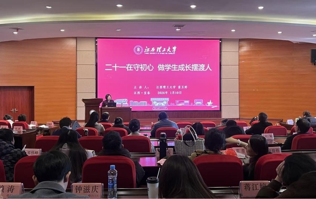 2025年江西省“最美高校辅导员”、江西理工大学专职辅导员董玉婷做了“二十一载守初心 做学生成长摆渡人”主题讲座。董玉婷结合二十一年的辅导员工作经验,用将近三个小时,分享了工作感悟,将凝练出的立足首责主业、聚焦关键小事、厚植仁爱根系、织密立体信息网、构筑协同生态“五位一体”工作法娓娓道来,老师们受到了深深的触动,对“为党育人、为国育才”有了更强烈的共鸣和更深刻的理解。