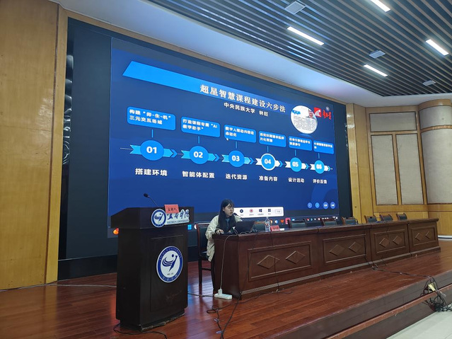 第二阶段,超星集团讲师章子歆以“超级黑板互动演示及超星网络教学平台智慧课程建设”为主题开展实操培训。她结合现场演示与案例,讲解了超级黑板互动功能与平台智慧课程建设流程,涵盖教学资源上传、活动设计到数据分析等环节,重点展示了AI助教答疑、知识图谱等智能化应用。此外,章子歆还分享了“超星智慧课程建设六步法”——搭建环境、智能体配置、准备内容、设计活动、迭代资源、评价反馈,为教师提供了清晰的实践框架,助力构建“师-生-机”三元交互场域。讲座期间,参会教师认真聆听、积极记录,并围绕智慧课程建设中的实际问题与嘉宾互动交流。教师们普遍反映,刘强教授的精彩分享为智慧课程建设指明了方向,章子歆讲师的实操培训则有效解决了日常技术应用难题,实用性很强。姜银杰老师表示:“这次培训让我对数智化教学有了新认识,尤其是超星平台的智能化功能,能切实提升课堂互动与教学效率,我将在后续课程建设中积极应用。”