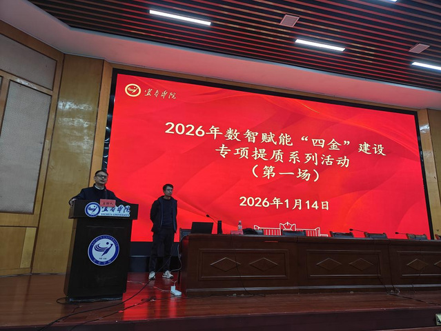 本站讯(教务处 供稿)为深入贯彻国家教育数字化战略行动,推动人工智能与“金专、金课、金材、金师”的深度融合,提升教师数智化教学能力,探索构建“教师主导、AI协同”的教学新范式,1月14日下午,学校在主教楼学术报告厅成功举办2026年数智赋能“四金”建设专项提质系列活动首场讲座。本次活动由教务处与现代教育技术与信息中心联合主办,特邀湖南大学刘强教授担任主讲嘉宾,全校三百余名教师代表到场参加。