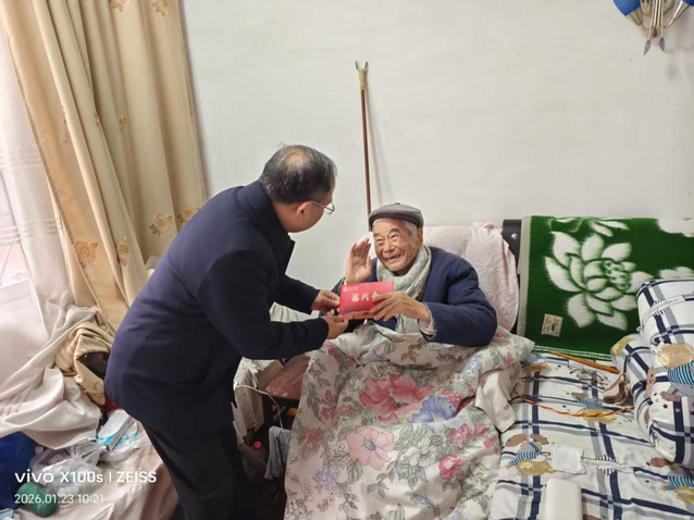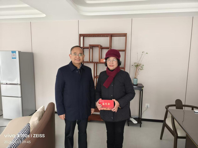 本站讯(离退休工作处供稿)在2026年农历新春佳节即将来临之际,学校党委书记李国金,党委副书记、校长蔡海生等领导班子成员带队于近日集中开展春节走访慰问离退休老同志,并代表学校党政向离退休老同志们致以诚挚问候和新春祝福。