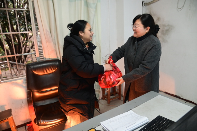 本站讯 (记者 袁璐)2月17日上午,农历马年正月初一,年味正浓。校党委委员、副校长余新卫代表学校党政领导班子,看望慰问了春节期间坚守岗位的教职员工和在校留学生,向大家送上新春的祝福与诚挚的敬意。党政办公室副主任袁筱青陪同。