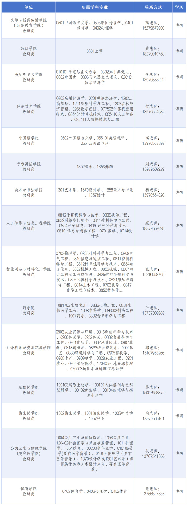 为实施“人才强校”战略,学校2026年拟引进一大批以下高层人才: