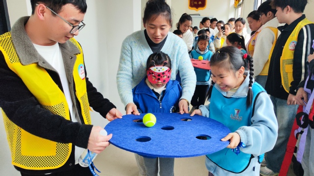 在“融合团建”环节,志愿者们和“星星的孩子”手拉手,齐心协力共同完成团队任务,大家脸上露出了相同灿烂的笑容。